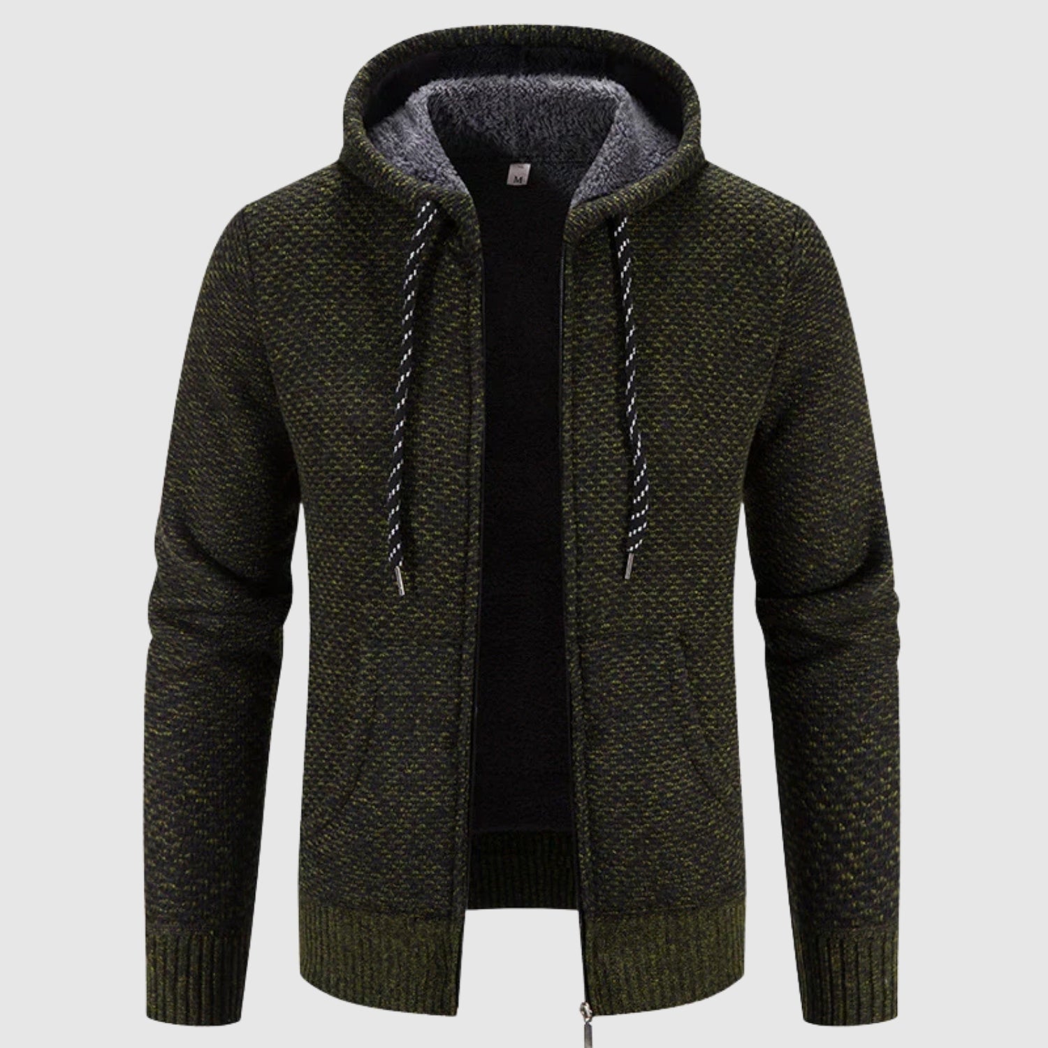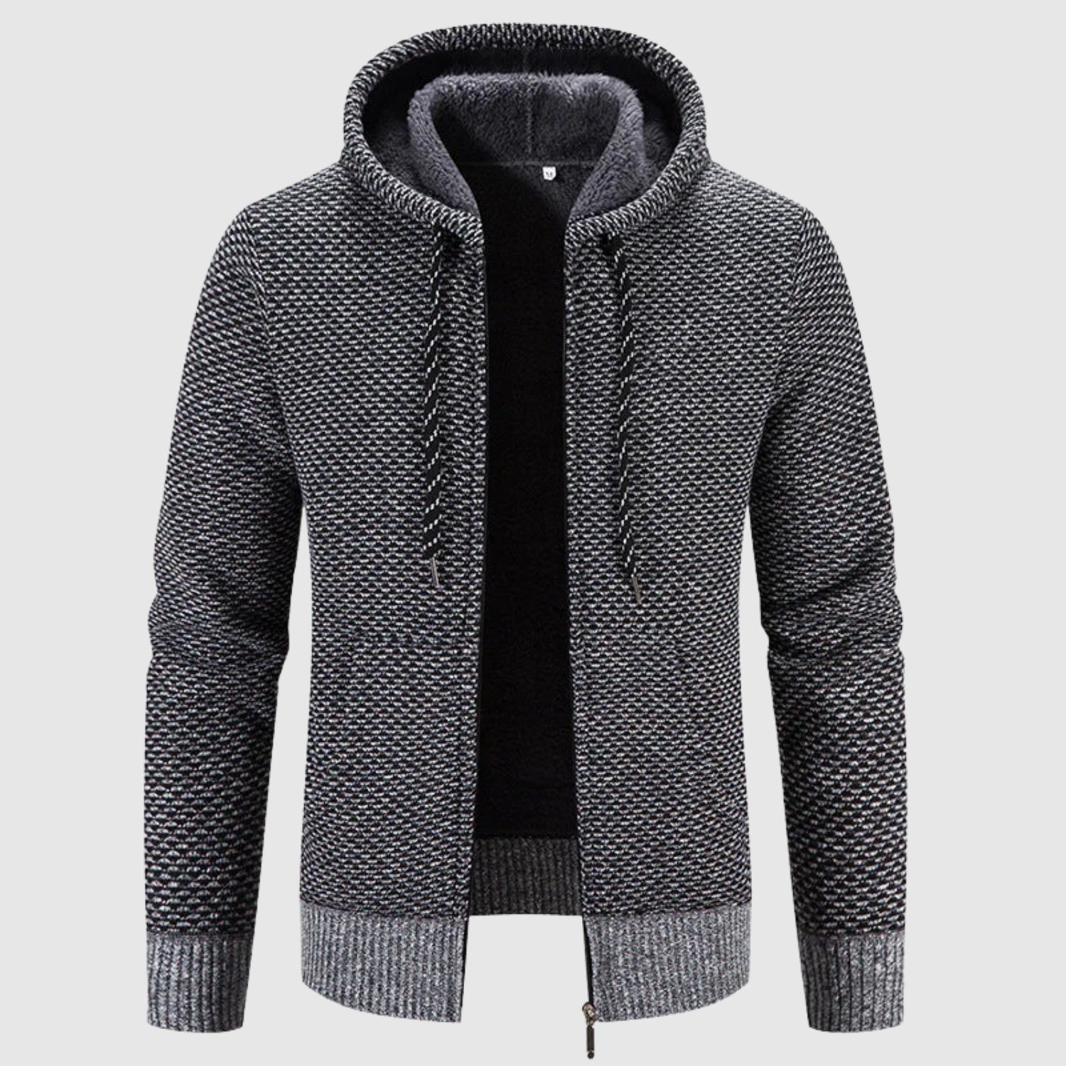 Tento svetr kombinuje teplo kabátu s pohodlím mikiny. Jeho silná a měkká tkanina poskytuje účinnou izolaci proti chladu, zatímco design s kapucí a zipem z něj dělá univerzální a moderní kousek. Ideální pro každodenní nošení, aniž by ztratil na eleganci a teple.