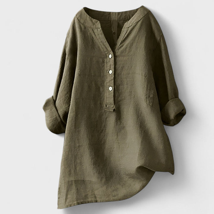 Košile Freja je nepostradatelný kousek pro dny, kdy chcete vypadat upraveně, ale cítit se volně. Vyrobena z lehkého, prodyšného materiálu, který ti umožní dýchat i za horkého počasí. Klasické knoflíkové zapínání a decentní límeček dodávají nadčasový vzhled, zatímco volný střih s mírně prodlouženou délkou lichotí postavě a poskytuje skvělý základ pro vrstvení.