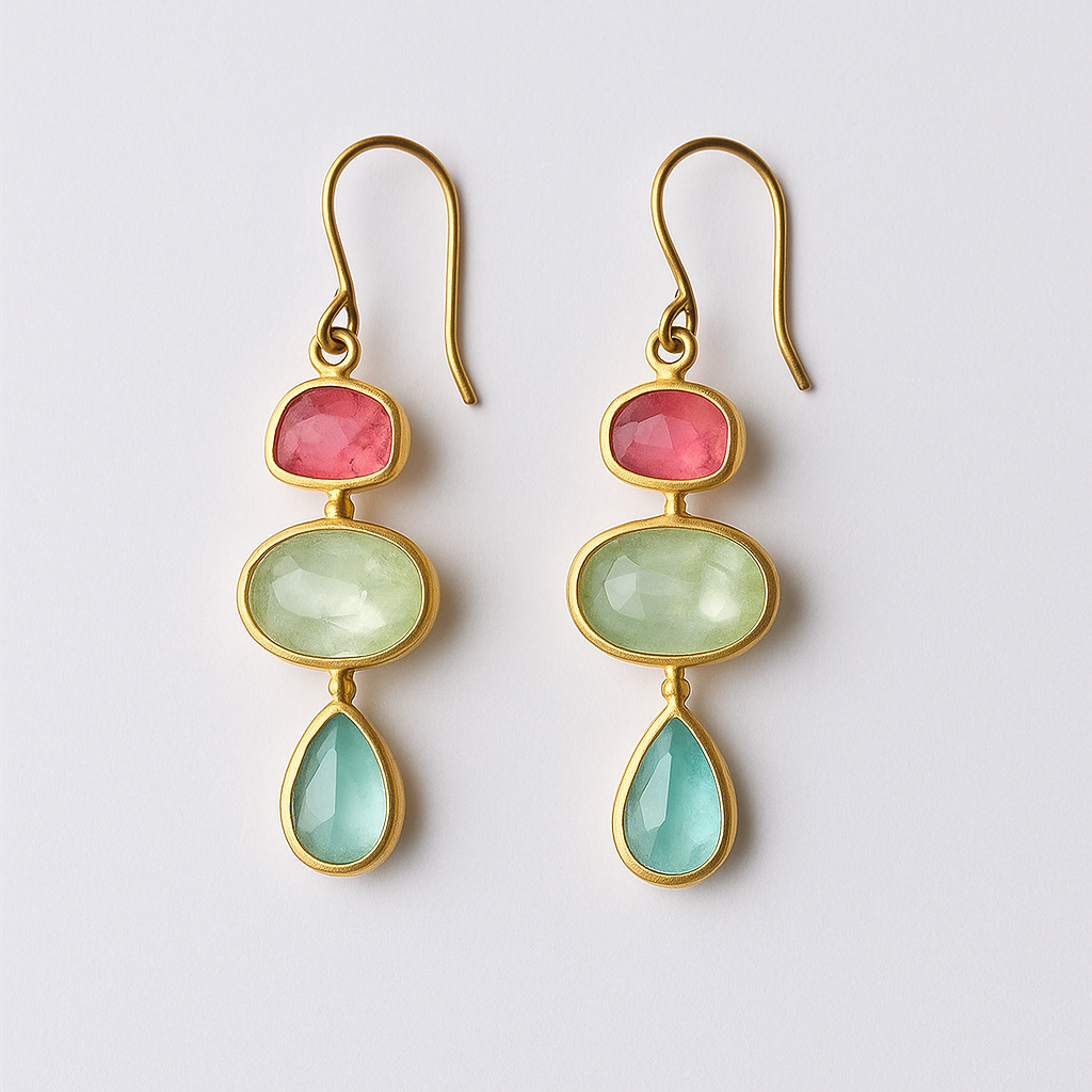 Zažijte čistou energii náušnic "Uffe", inspirovaných svobodou a krásou života. S třemi živými barvami — červenou, zelenou a modrou — vytvářejí dokonalou rovnováhu, která harmonizuje jako noty v veselém melodií.
