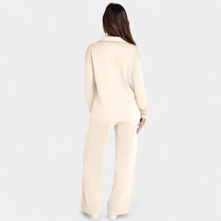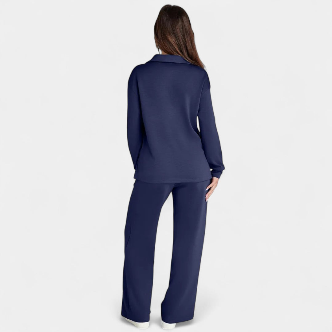 Set Jitka spojuje styl a komfort do dokonale sladěné dvoudílné soupravy. Je lehký, všestranný a navržený tak, aby ti dodal sebevědomí – ať už jsi na cestách, na kávě s přáteli nebo si užíváš klidný den doma.