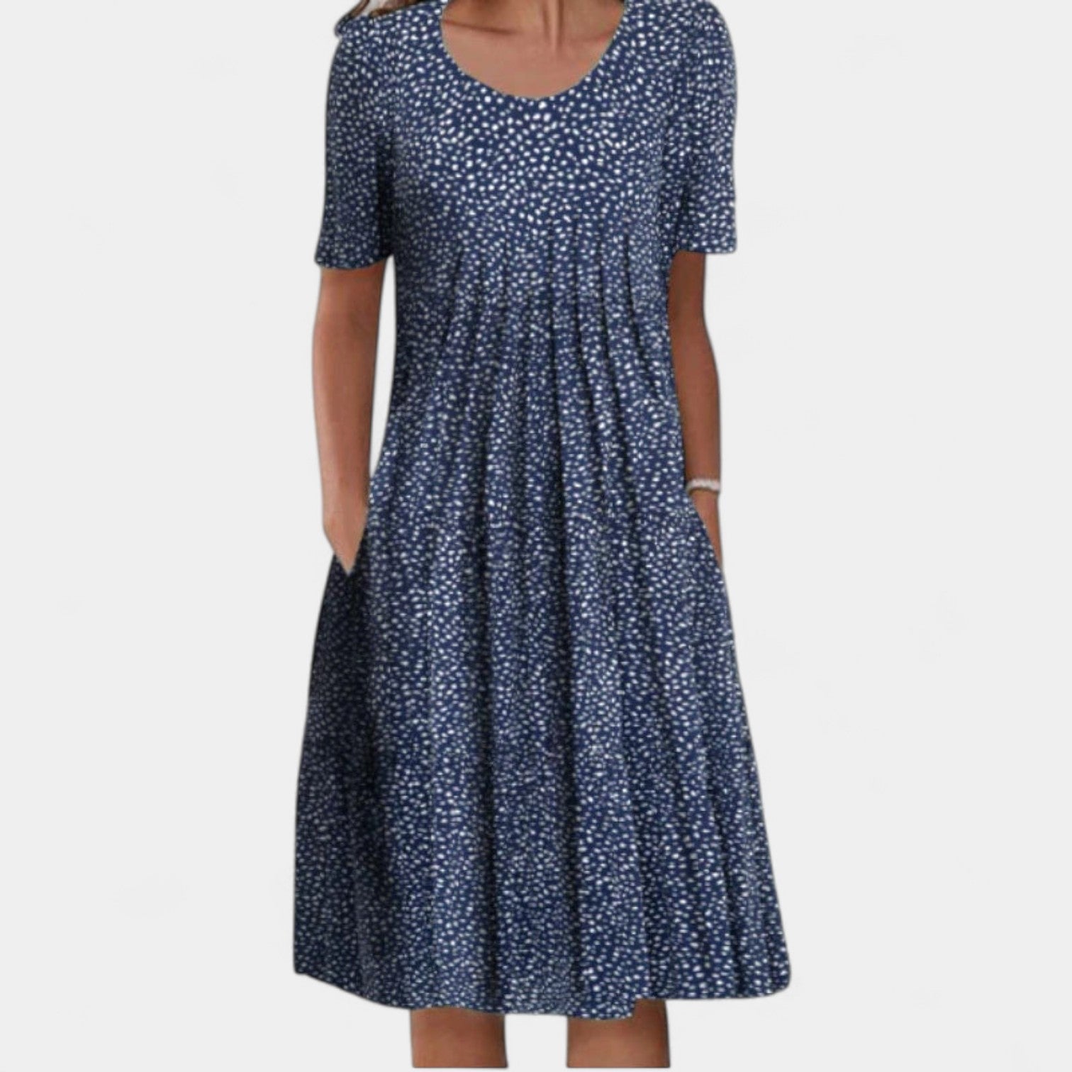 Šaty Andrea spojují jemný šarm s lehkostí a volností pohybu. Jejich ženský střih zvýrazní postavu a květinový vzor dodá outfitu svěží nádech. Praktické kapsy dělají z tohoto modelu ideální volbu pro celý den – od ranních pochůzek až po večerní setkání.
